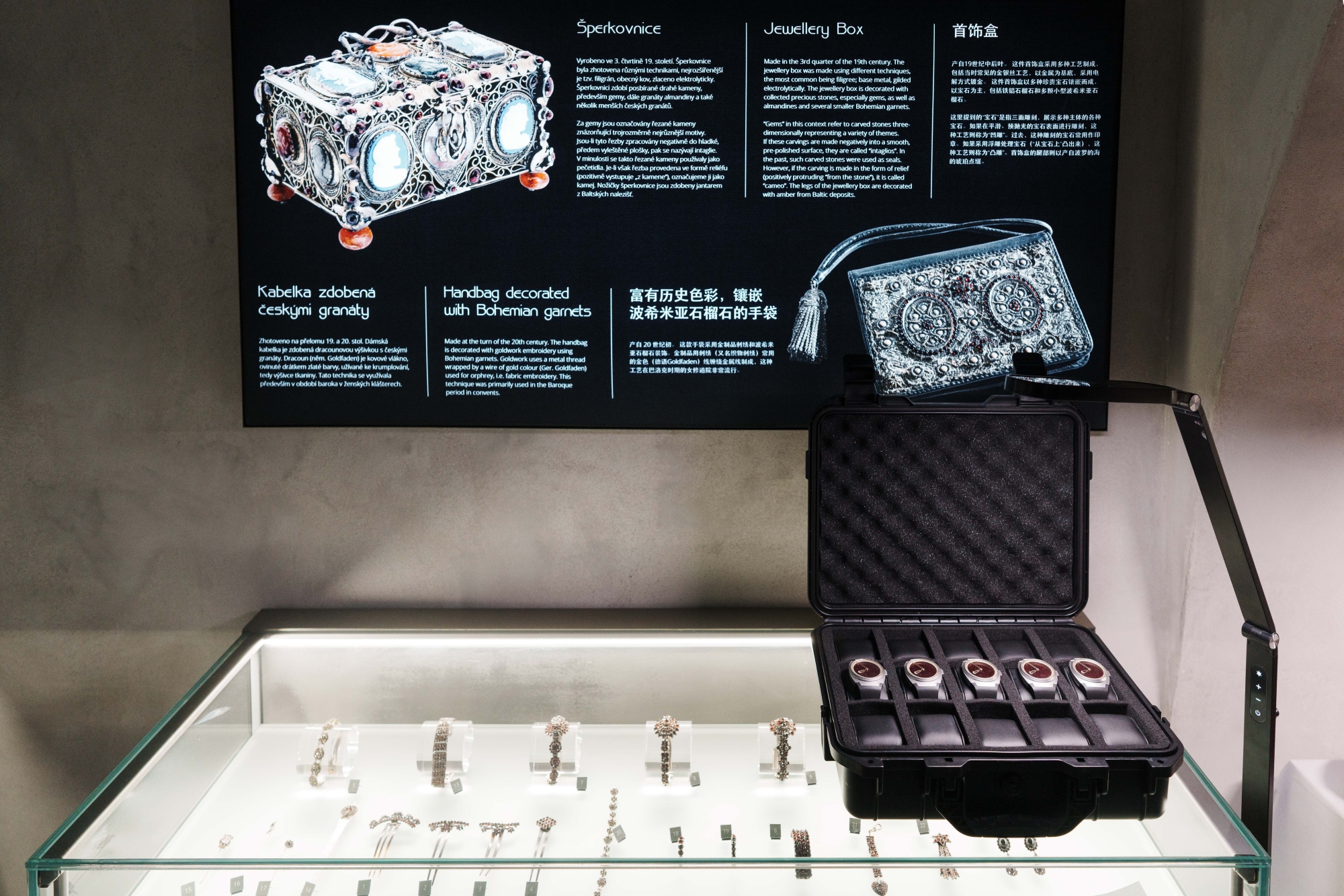 Slavnostní večer přinesl i další poklady: vedle unikátních hodinek byla vystavena zlatá šperková souprava, která vznikla ve výrobních prostorách Granátu Turnov speciálně pro letošní EXPO 2025 v Osace, stejně jako nově navržené kolekce šperků zdobené certifikovanými českými granáty. Tyto šperky, jejichž původ garantuje právě družstvo umělecké výroby Granát Turnov, doplnily atmosféru tradice a luxusu.